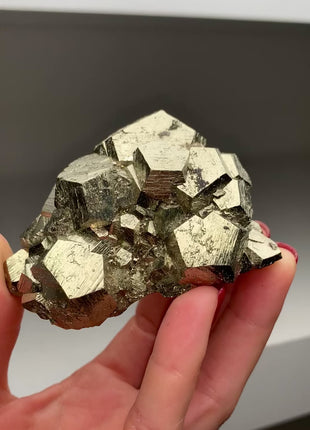 Very High Grade Pentadodecahedral Pyrite with Great Luster Origin: Huanzala, Peru Size: 80 x 57 x 47 mm Weight: 363 Grams Read more