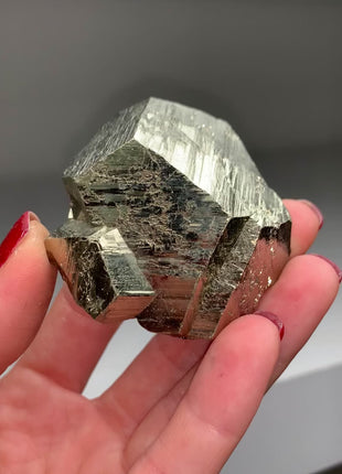 Very High Grade Pentadodecahedral Pyrite with Great Luster Origin: Huanzala, Peru Size: 58 x 56 x 27 mm Weight: 132 Grams Read more