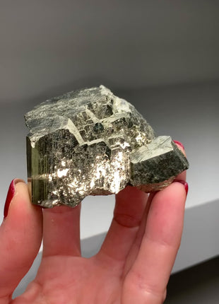 Step-wise Pyrite with Great Luster Origin: Huanzala, Peru Size: 70 x 62 x 28 mm Weight: 197 Grams Read more