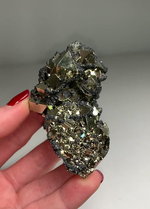 Very high grade Pyrite with great luster Origin: Huanzala, Peru Size: 78 x 50 x 43 mm Weight: 182 gr Read more