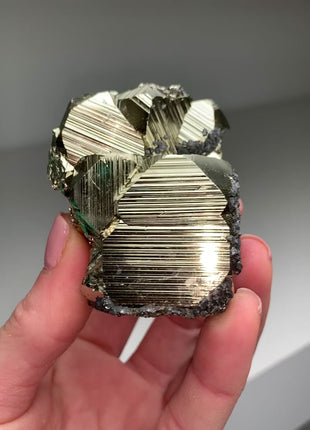 Very high grade Pyrite with great luster Origin: Huanzala, Peru Size: 63 x 53 x 38 mm Weight: 211 gr Read more