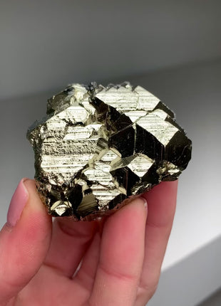 Very high grade Pyrite with great luster Origin: Huanzala, Peru Size: 53 x 52 x 32 mm Weight: 171 gr Read more