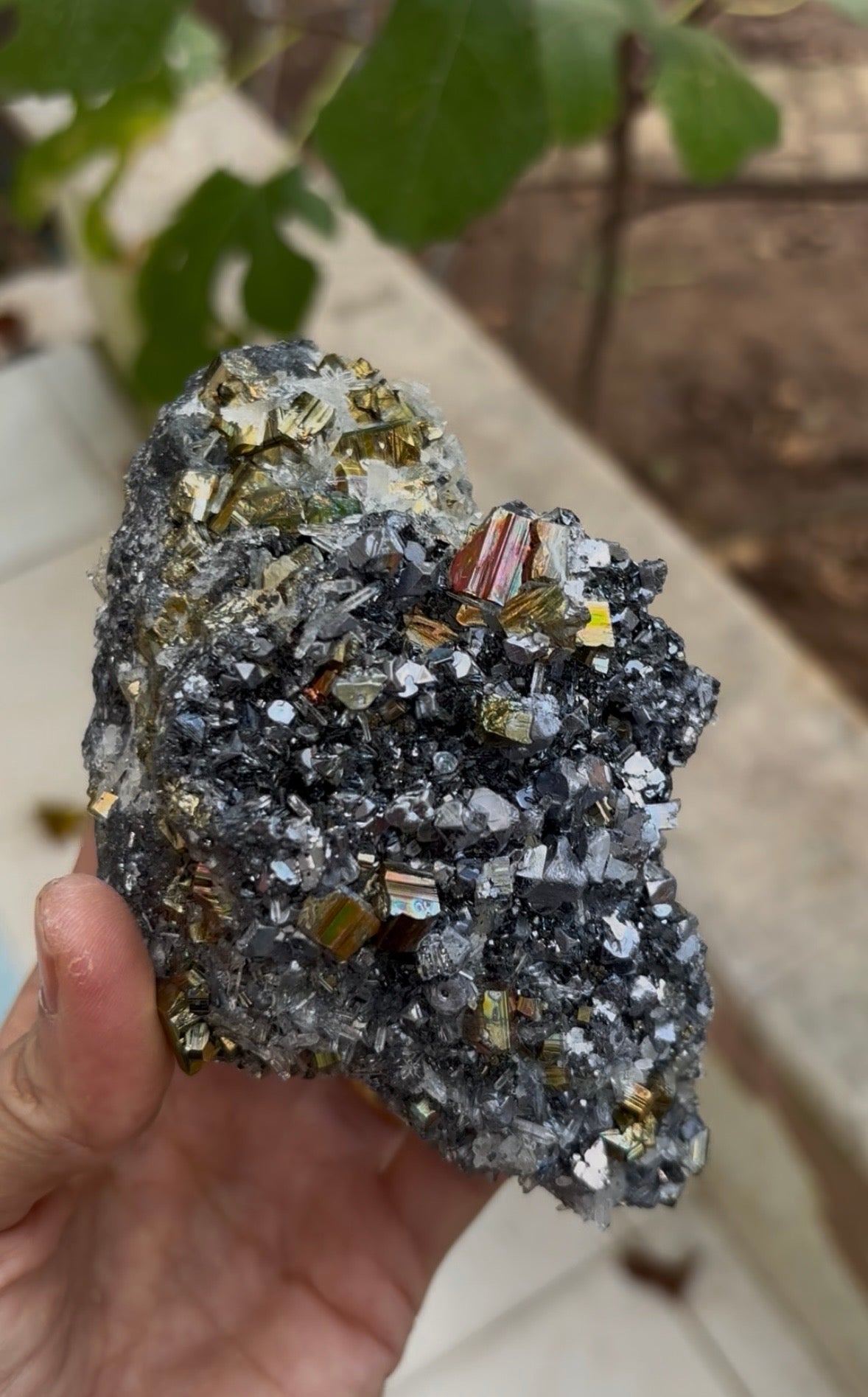 Very Shiny Rainbow Pyrite with Silvery Galena