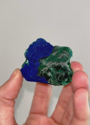 Deeply saturated, royal blue Azurite with velvety green Malachite. Sparkling druzy Azurite creating vibrant highlights over botryoidal, velvety Malachite formations.... Read more