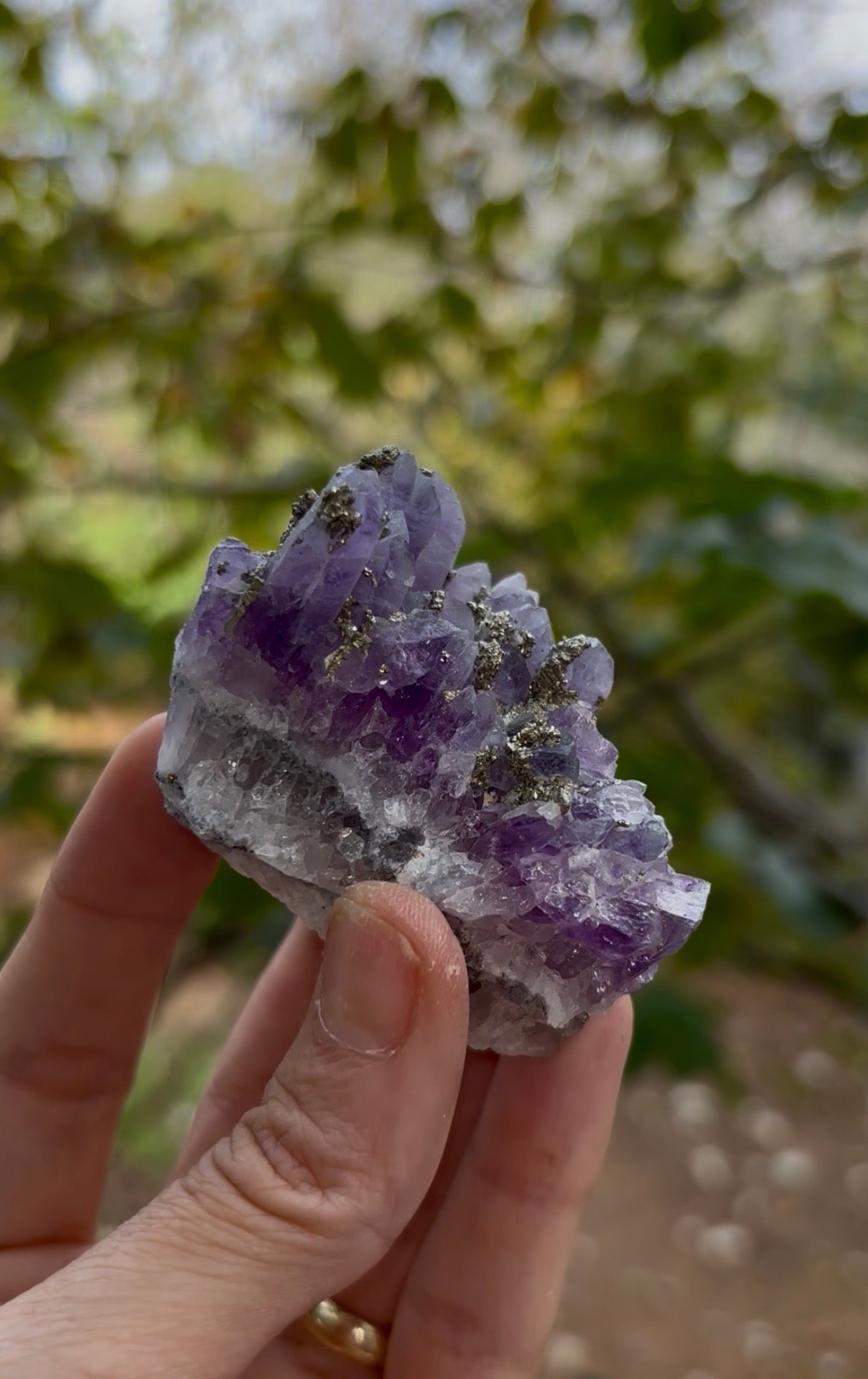 Amazing Amethyst with Golden Pyrite. This combination is characteristic to Chala mine only. The mine has been closed and there’s no active production.