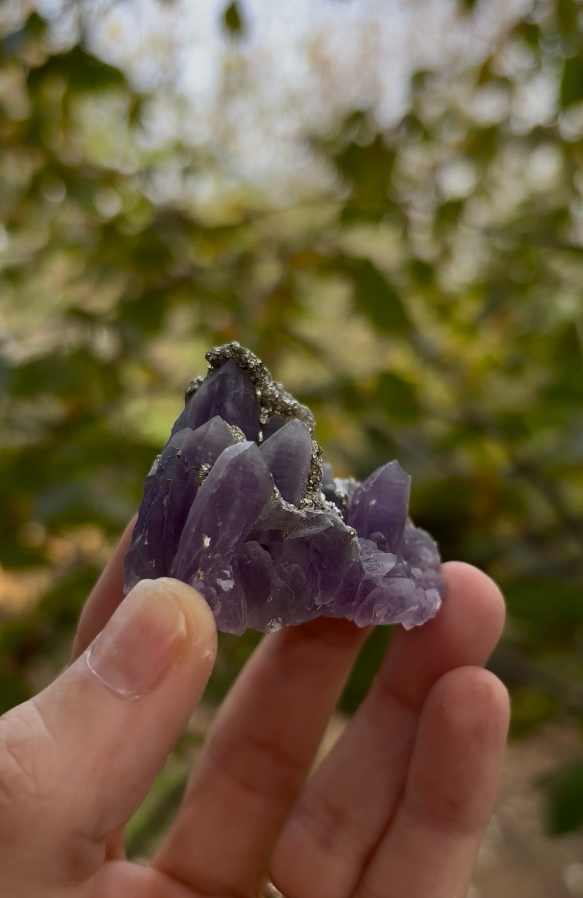 Amazing Amethyst with Golden Pyrite. This combination is characteristic to Chala mine only. The mine has been closed and there’s no active production.