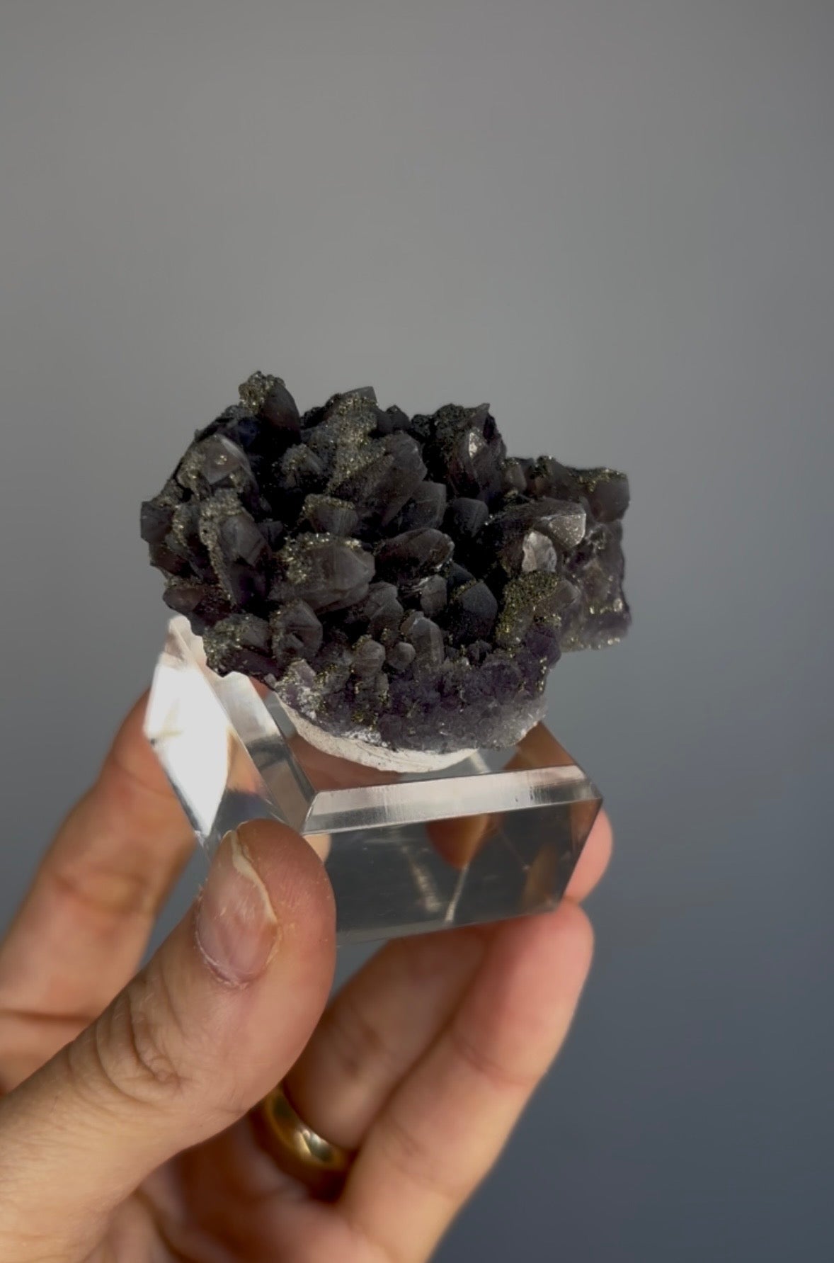 Amazing Amethyst with Golden Pyrite. This combination is characteristic to Chala mine only. The mine has been closed and there’s no active production.