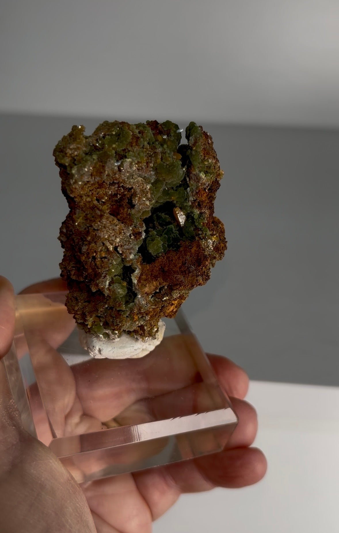 Botryoids of rich green mimetite with deep amber-colored, wulfenite. 2009 find From Ojuela Mine, Mapimí, Mapimí Municipality, Durango, Mexico. Size:... Read more
