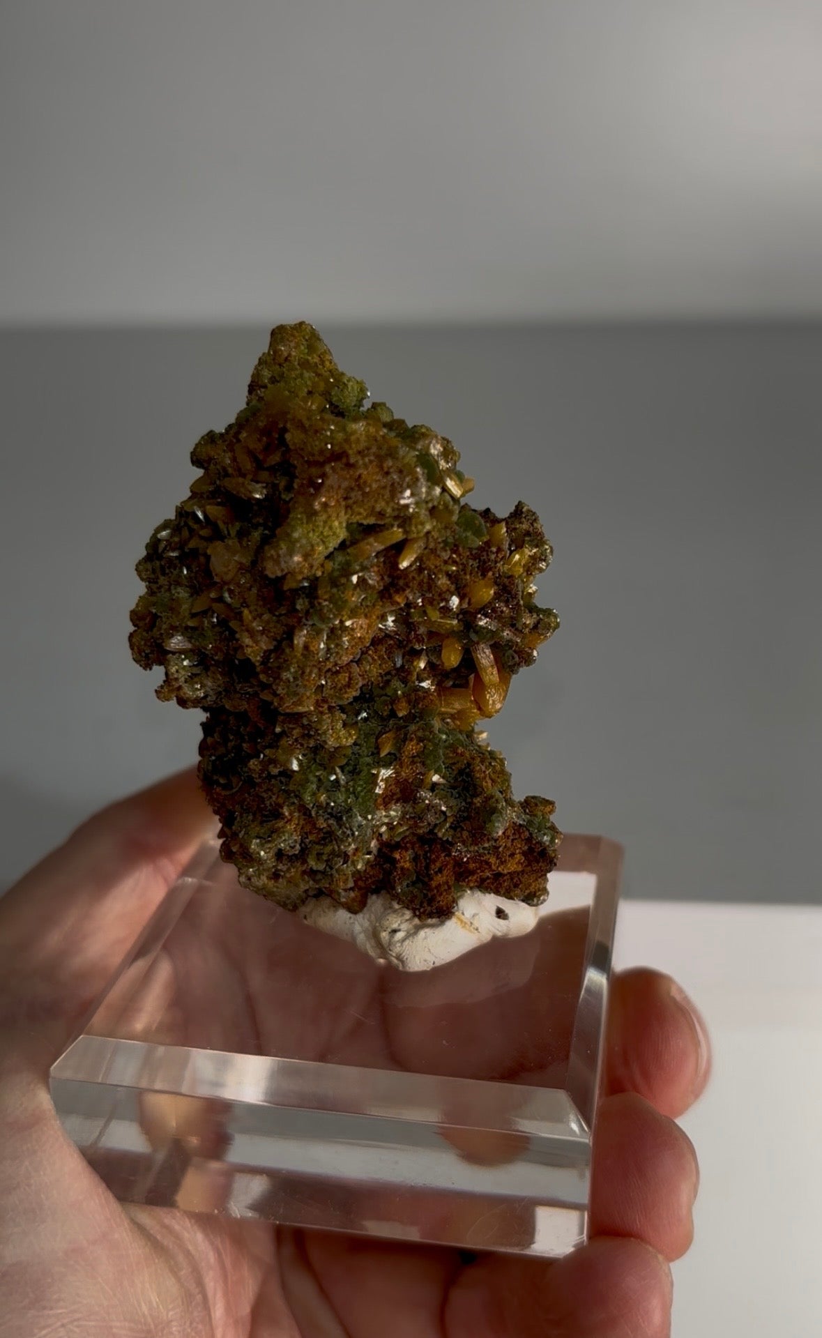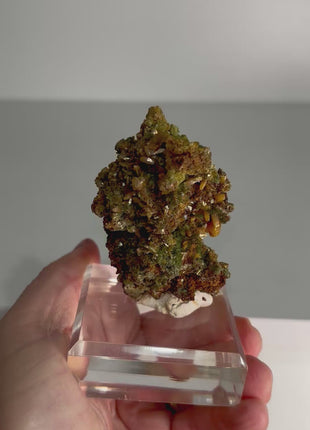 Botryoids of rich green mimetite with deep amber-colored, wulfenite.  2009 find From Ojuela Mine, Mapimí, Mapimí Municipality, Durango, Mexico. Size:... Read more