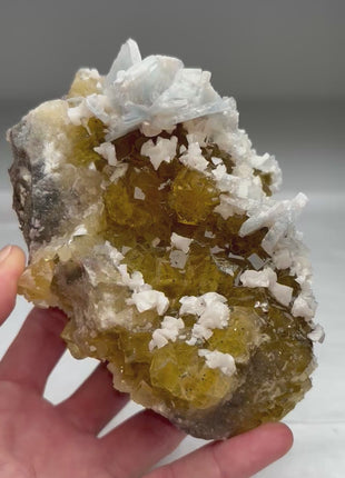 Yellow Fluorite with Blue Barite and White Dolomite Origin: Moscona mine, Asturias, Spain Size : 142 x 91 x 83... Read more