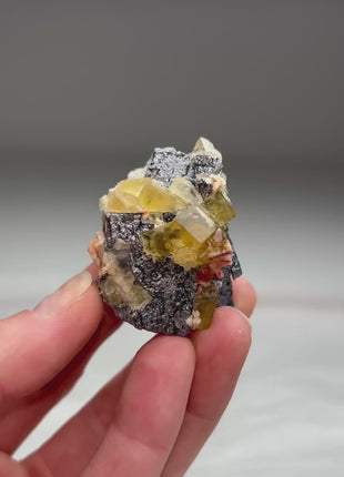 Yellow Fluorite with Metallic Galena Origin: Aouli, Mibladen, Morocco Size: 45 x 44 x 36 mm Weight: 112 gr Read more