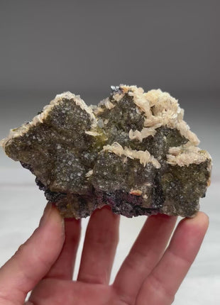 Yellow Fluorite with Barite Flowers and Galena Origin: Aouli, Mibladen, Morocco Size: 107 x 74 x 48 mm Weight: 637... Read more